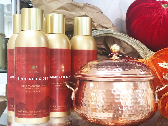We mentioned earlier that we love the Nest Pumpkin Chai candles, but the scent that we go back to each and every Fall is the Thymes Simmered Cider line.