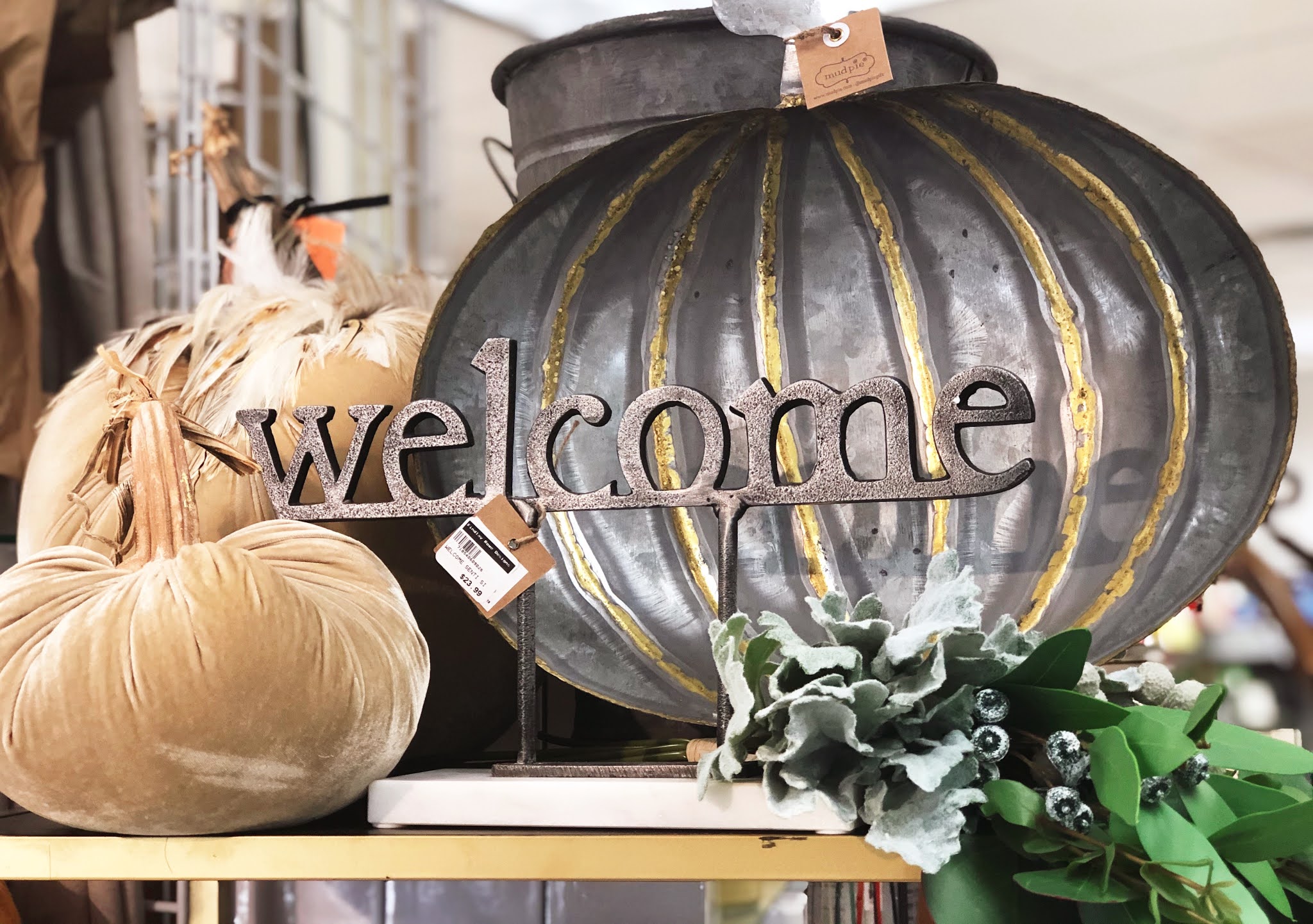 We love these metal signs they had on display intermixed with mixed metal pumpkins and the infamous Hot Skwash plush pumpkins. These would be perfect for a Fall themed entry table!