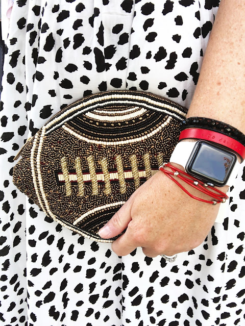 Football isn't dead yet. And we hope it comes back so that we can homegate with this super cutie little beaded football handbag from Mary Frances.