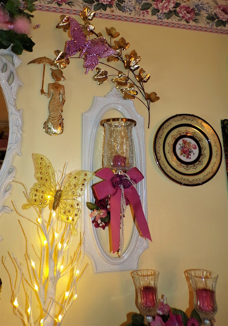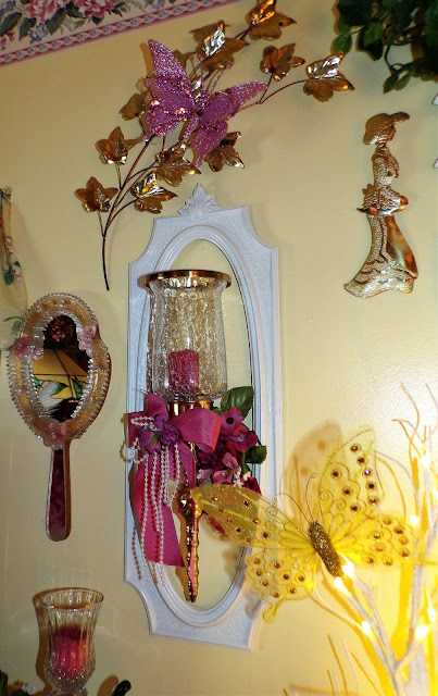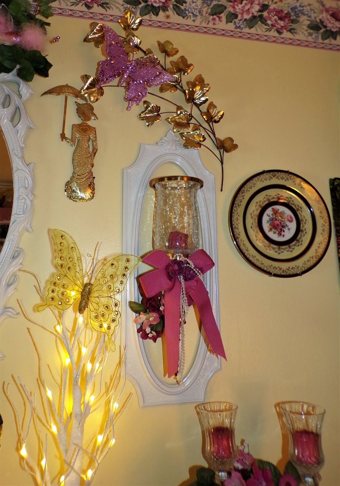 I clipped pink Butterfly ornaments to the Home Interiors branch plaques.....