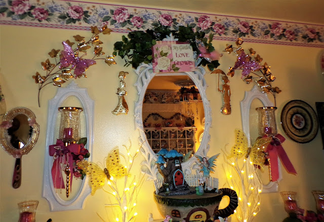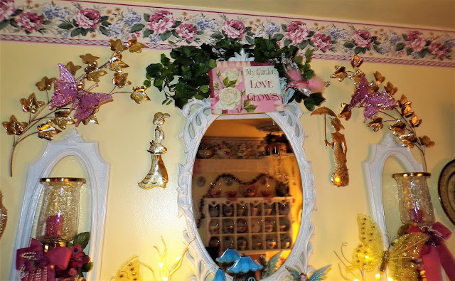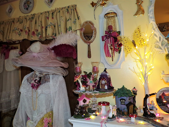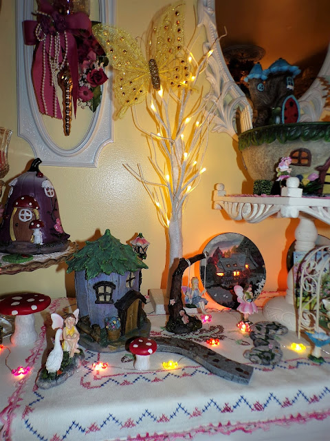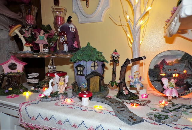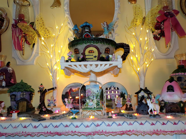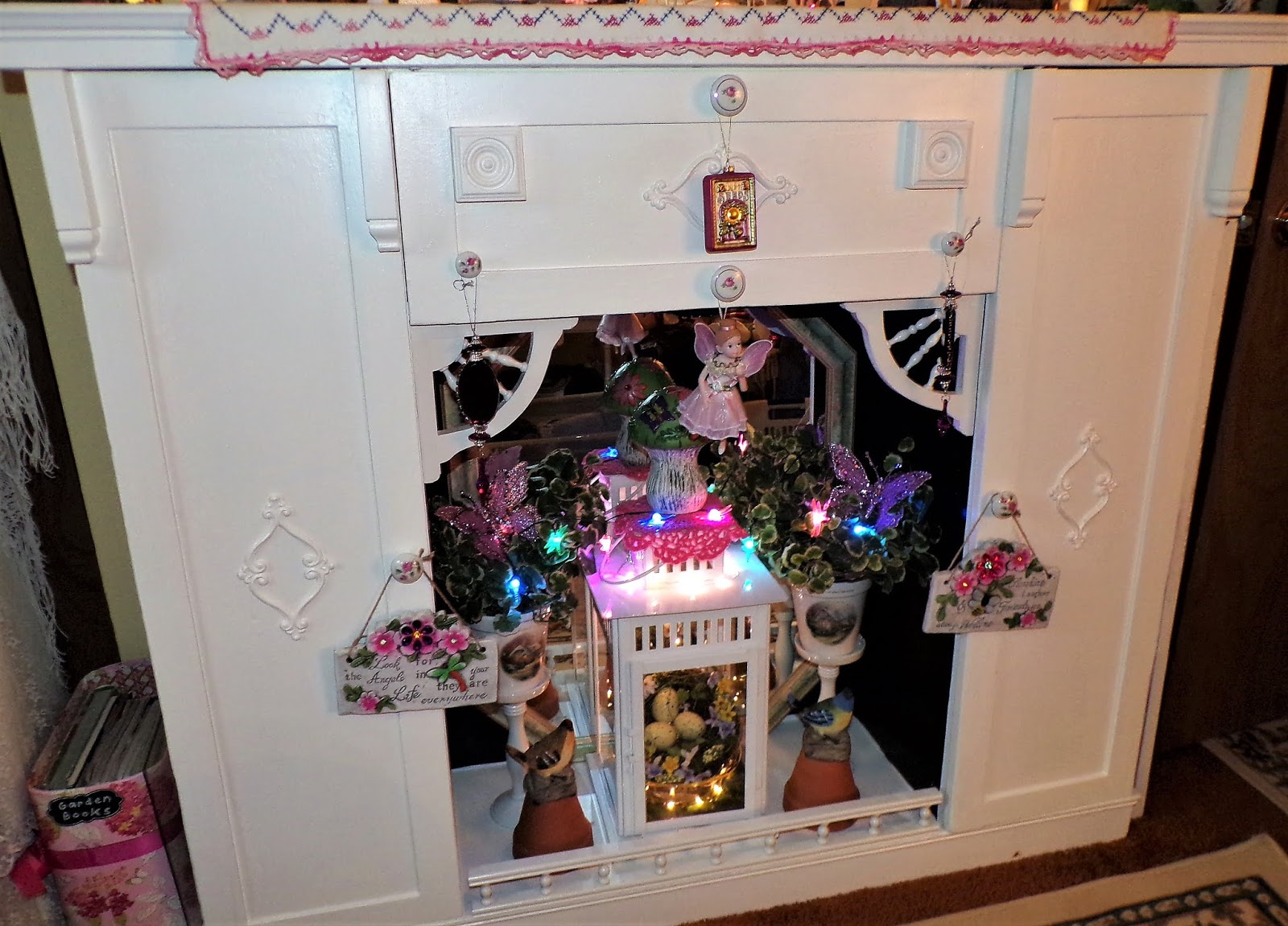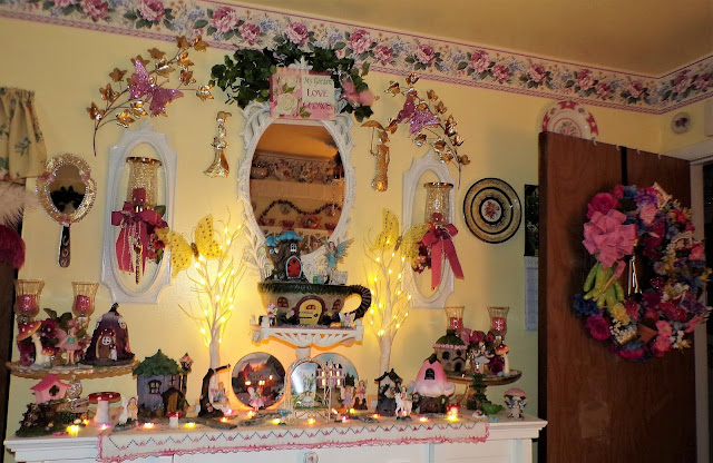 For a few years now, I have decorated the "mantel" with Fairy Garden pieces......