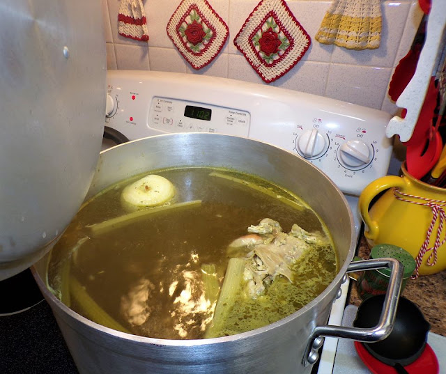 Making Turkey Bone Broth Soup from the turkey breast I made for Easter Dinner.....