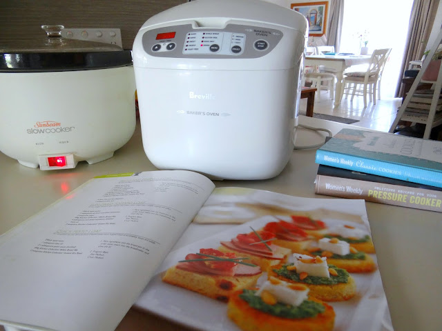 The slow cooker and the breadmaker sat side by side while I made cookies for Mr E...