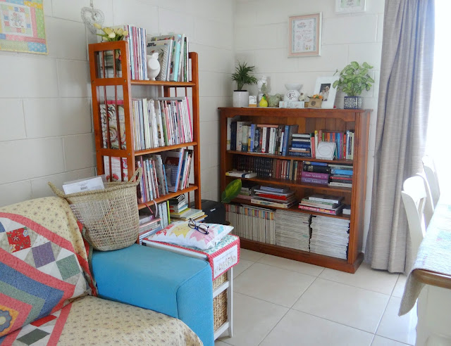 A bonus is the corner between the couch and the dining table has now become the cosiest book nook and I look forward to being reacquainted with my library of craft books and old country living magazines in the cooler months to come.