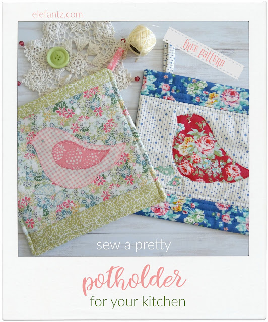 In keeping with my love of all things birdlike today's free home-based project features a feathered friend, with or without wing, appliqued onto a very simple pot holder you can sew using what you have at home.