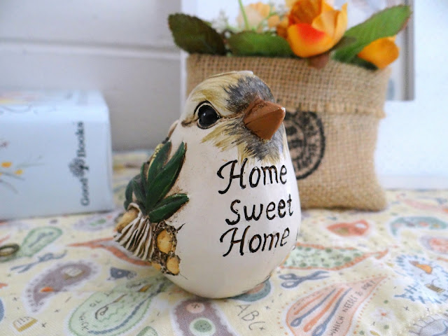 * sew the bird into each corner of a pre-bought tablecloth or make the tablecloth from a square of gingham. (I might do this!)